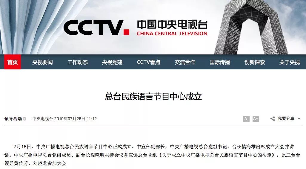 ▍总台民族语言节目中心成立