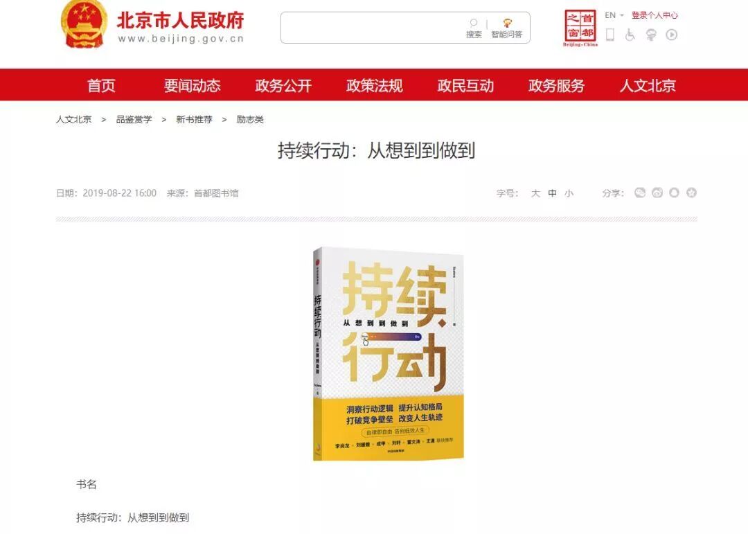 虽然我们并不追求数量上的极度增长,但是这并不代表我们没有力量。持续行动者的力量来自时间,来自长期主义,来自坚定的信念。2019年8月,我出版第二本书《持续行动》,在预售第二天就进入了当当新书排行榜总榜第一名,之后20天内,中信出版社连续加印两次,连我这个作者想多搞几本样书,都很难弄到。最近,《持续行动》还获得了北京市人民政府推荐。这一切成绩都来自社群的坚定支持,来自持续行动的力量积累,大家用自己的行动,为《持续行动》开了一个好头,我们将见证了一本畅销书的产生。