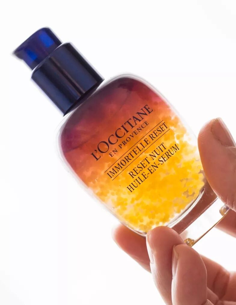 正是她从很早就开始一直保持这些良好的习惯,才能在36岁的年纪复出后依然拥有好的状态,所以说常年的保养和抗氧化非常重要,而且越早越好。不仅是生孩子后的妈妈们需要坚持抗氧化,像我们这种还没生娃的妙龄少女也要未雨绸缪。毕竟,经常熬夜几乎都是成年人生活的常态了。各种不健康的生活方式让肌肤很容易变得发黄、暗淡无光,化了妆可能可以遮掩一下,卸了妆简直老十岁。所以皮肤修护和抗氧化,对于每个女生都是迫在眉睫的护肤问题。作为我号最敢试新品、上各种“护肤猛药”的勇士,我尝试过很多热门的抗氧化产品,从简单的维生素E,到名字更高级的“葡萄籽”、“虾青素”……走过不少弯路,也交了不少智商税。不过有失也有得,在那一堆冲动消费的抗氧化产品中,冲着颜值去买的欧舒丹星光瓶肌底精华用过后让我深深折服了。原来外表好看的它,也是天然抗氧修复力也很强的!和很多人一样,我以前对欧舒丹的印象只是停留在身体乳和护手霜,作为颜控刚开始留意到它,是因为外表实在太好看了。瓶子渐变的颜色就像傍晚的天空,悬浮的金黄色微珠看上去犹如点点星光。了解后才知道,原来这浪漫至极的外表内里大有玄机,星光瓶通过这种“微囊科技”将10%天然植物精华油+90%精华液两种质地组合在一起。