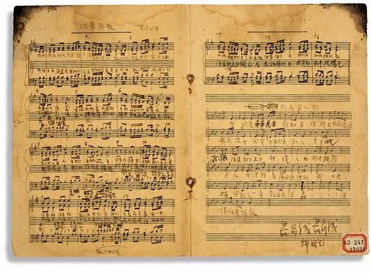 1937年“八·一三”淞沪抗战爆发后,著名作曲家贺绿汀参加了上海文化界救亡演剧队第一队,赴南京、武汉等地演出,最后到达山西临汾八路军办事处。他在那里认真学习了中国共产党抗日救国政策和游击战争的战略战术,精心构思写成了这首歌曲。1938年春在八路军总司令部举行的晚会上首演后,迅即在各部队中传开,极大地鼓舞了抗日军民的斗志。这件《游击队歌》手稿是贺绿汀本人于1961年捐献给纪念馆,现为馆藏国家一级文物。