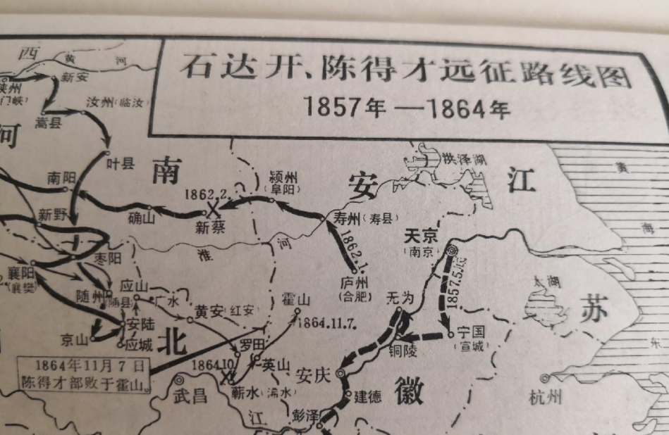 1853年秋,石达开奉命出镇安庆,首度节制西征,他先亲自指挥攻克清安徽临时省会庐州(今合肥),迫使新任安徽巡抚、曾击毙了七千岁南王冯云山的湘军名将江忠源投水自尽。
