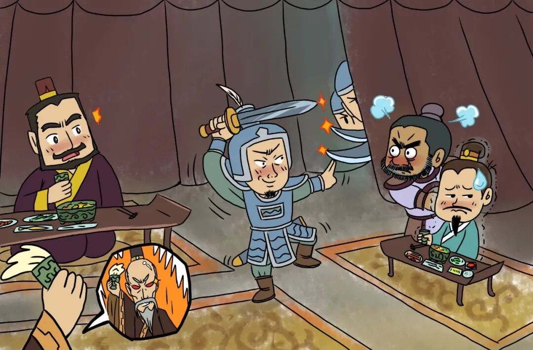 这句话比较有名,几乎跟“生子当如孙仲谋”名气一样大。当初项羽设下鸿门宴,范增一个劲劝他杀了刘邦,项羽却犹豫不决错过良机,范增气得大骂“竖子不足与谋”,意思是你这傻瓜,我帮你出主意真是浪费时间!