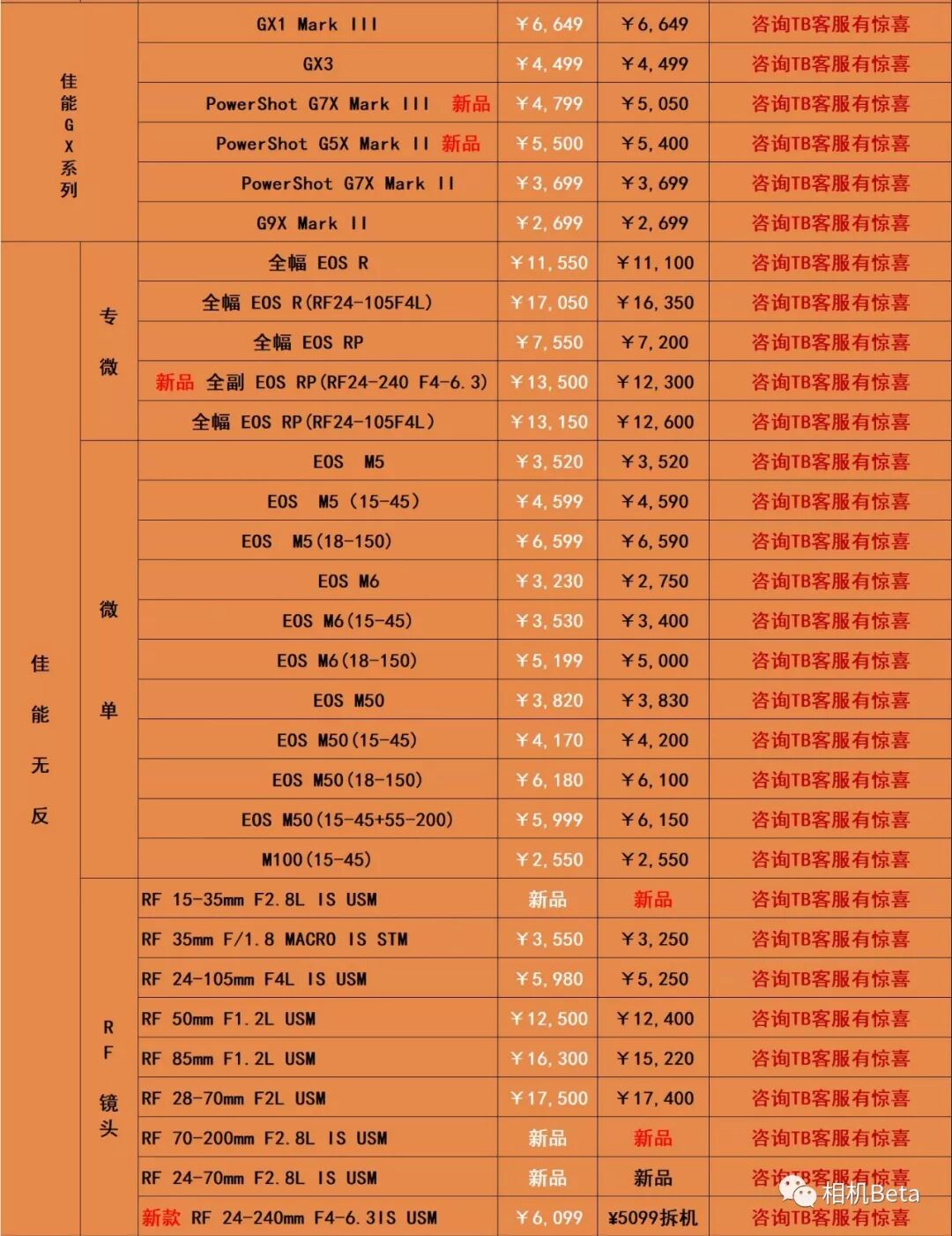 - 【价格周报:佳能5D4、 索尼A9、 A7R4继续降价……】本周的报价来的晚了些,因为前几天各种新品发布比较多,所以报价只能让路了。不过本周几款重要机型的价格均有所下降,佳能家的EOS 5D Mark