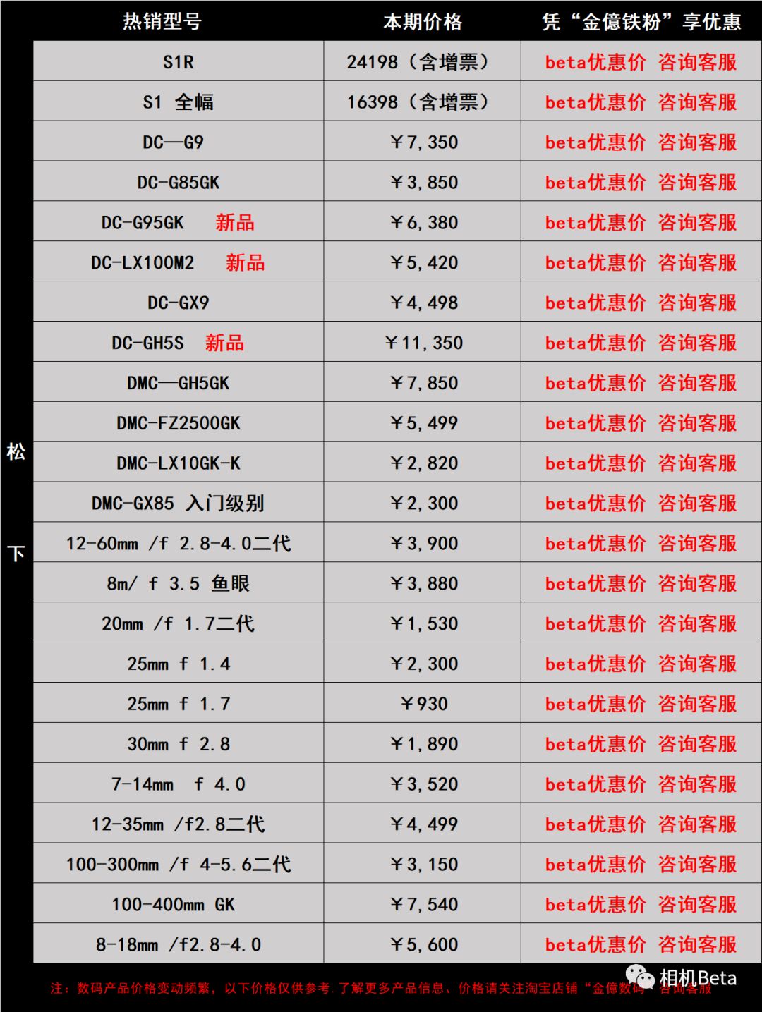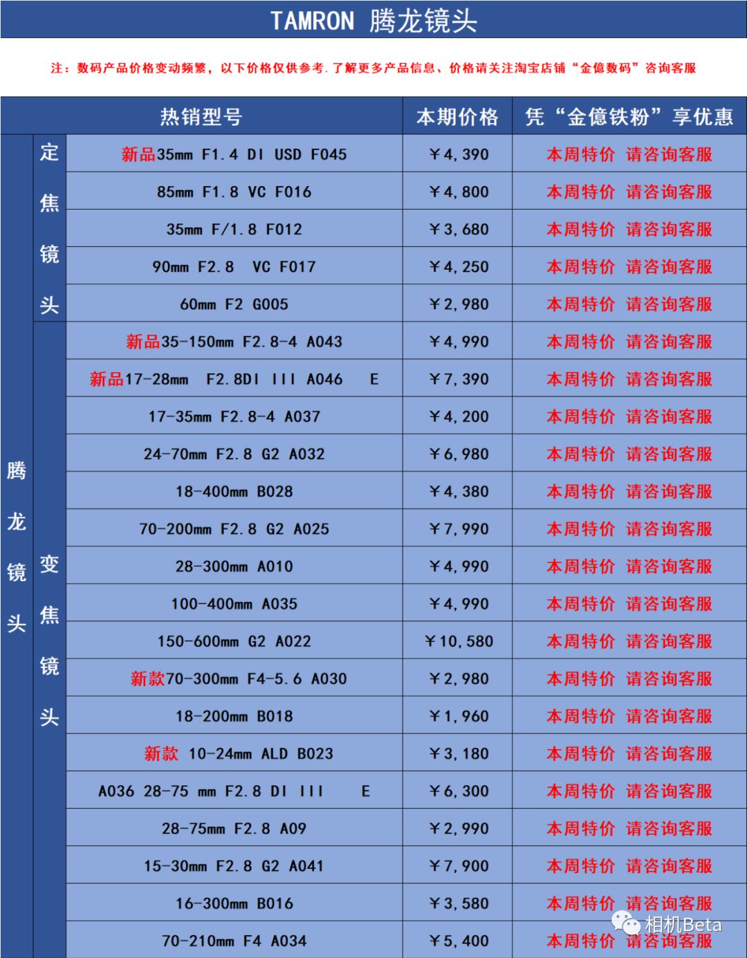【价格周报:佳能5D4、 索尼A9、 A7R4继续降价……】本周的报价来的晚了些,因为前几天各种新品发布比较多,所以报价只能让路了。不过本周几款重要机型的价格均有所下降,佳能家的EOS 5D Mark IV无论是单机还是套机,价格均有所下降,而索尼家的A9速度旗舰,与A7R IV全新高像素机型价格均有所下降,索尼A9的售价更是逼近2万大关。更多价格详情大家自行观看吧。(着急用了劳模版更正一下EOS 90D)