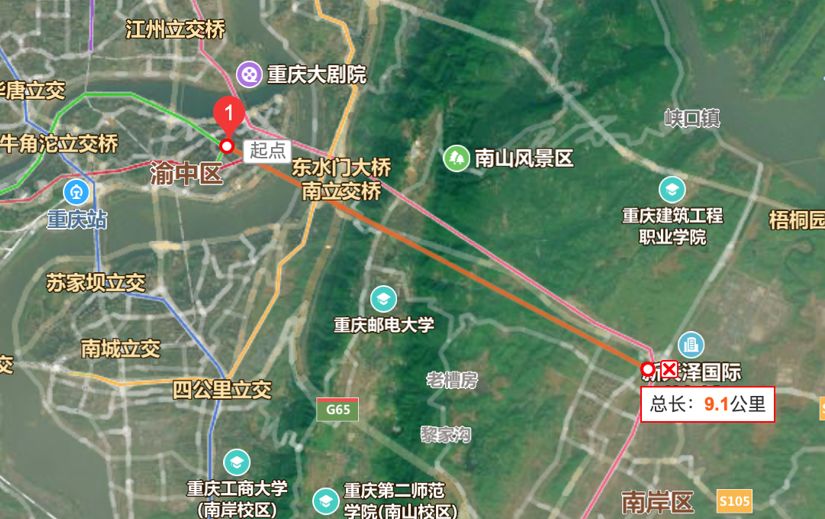 再看图局部放大,重庆主城左右(东西)均有大山阻拦,要想穿过大山,必须通过短则4公里,长则8公里的穿山隧道。