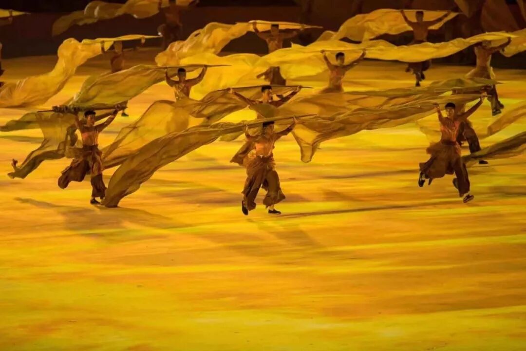 第二篇章则是“出彩河南”,以黄河之水、纵横枢纽、合和太极、威武少林等河南特色元素,弘扬中原大地源远流长的华夏历史文明,全方位展示亿万中原儿女牢记习近平总书记殷殷嘱托,快步迈向“中原更加出彩”的时代风貌。