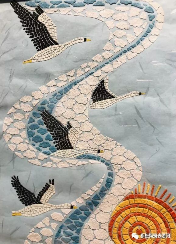 这和看扁平的印刷版,感觉是完全不一样的——在原画里你看得到故事。听说萧湄义老师每创作一幅图,需要45天,因为都是要细心切纸,再用镊子粘贴,视力下降得厉害。所以,在原画里,你更能了解绘本创作者的心血。