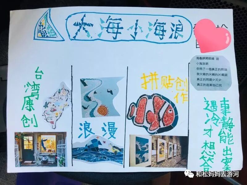 松的暑假作业之一是要做一本读书分享,松就选了《大海小海浪》这本,并且总结了他心中的四个特点,足见这次展览也给他心里留下了很深的痕迹。(当他非常确定地说出“浪漫”的时候,我还挺惊讶的,追问他何为“浪漫”,他说不出具体的,但指着画面告诉我,“就是一种感觉”)