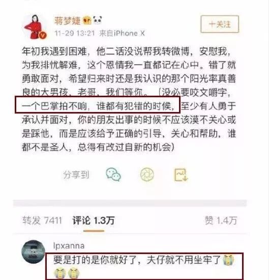 蒋梦婕却发文堂而皇之地称:“一个巴掌拍不响”。