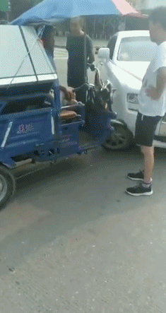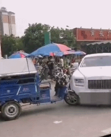 一台三轮车逆行撞了劳斯莱斯!
