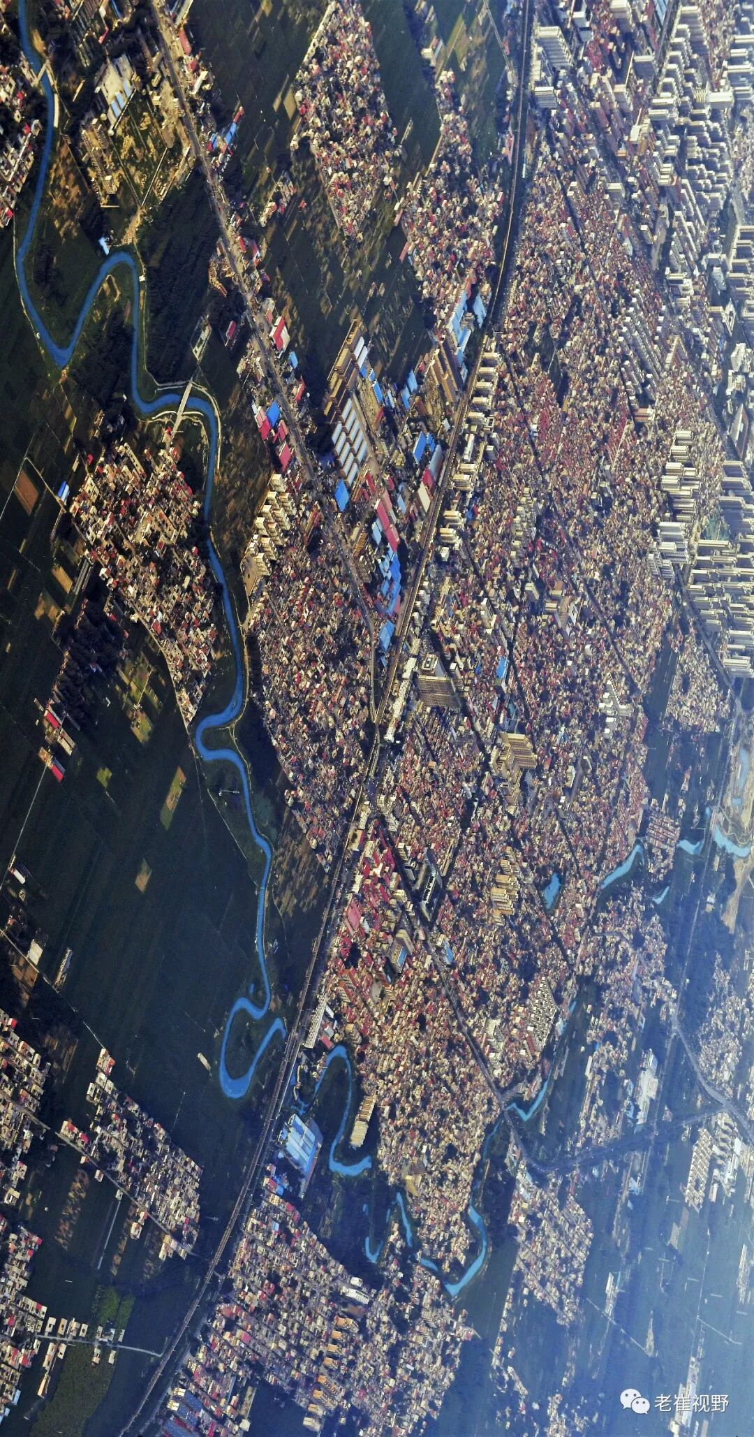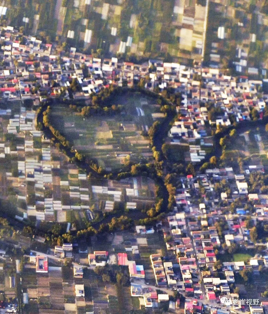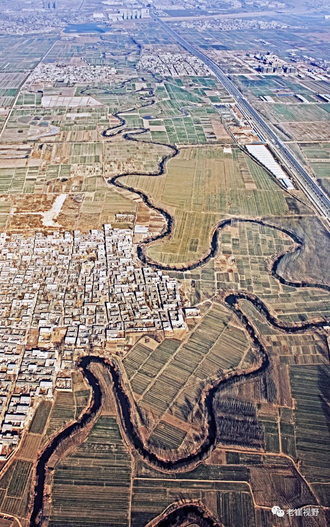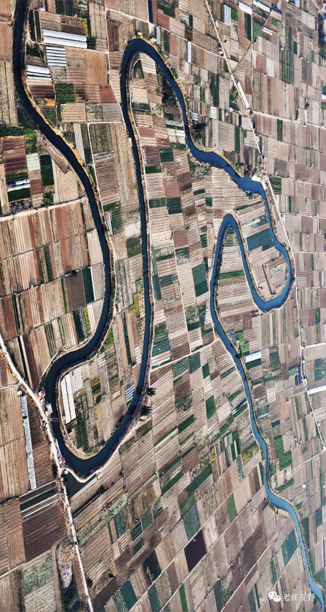 (图片上部的村庄是石桥村,滏阳河从这里向北,开始了任性的摇摆,在大地上刻出了迷人的曲线。图片水流走向:下。摄影@邯郸老崔)