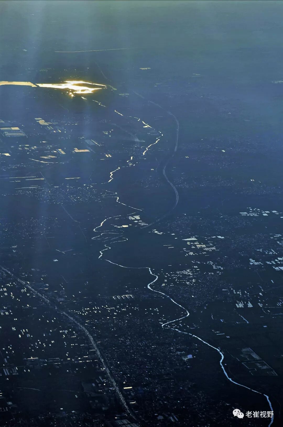 (逆光下的滏阳河曲就像一幅挥毫泼墨的草书。图下方的岛心湖是个牛轭湖。图片水流走向:下。摄影@邯郸老崔)