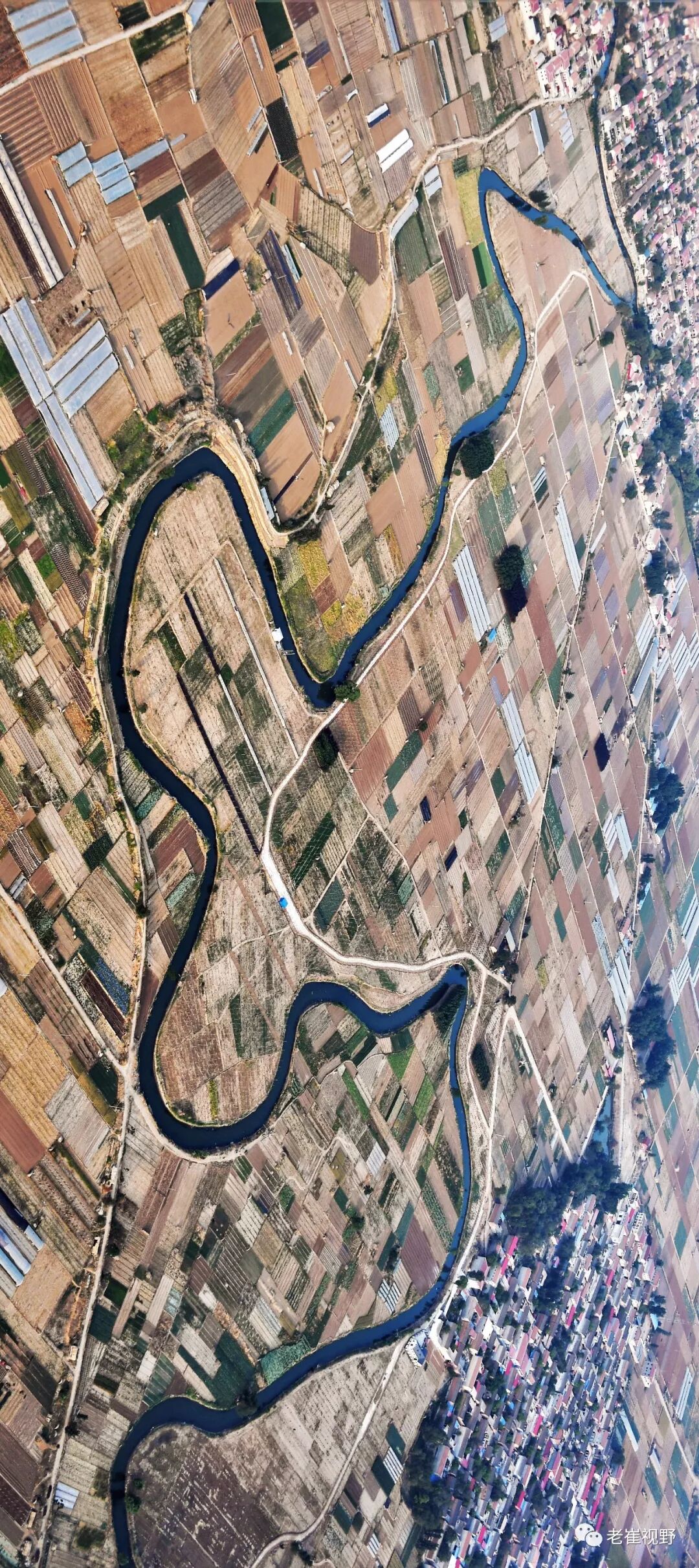 (滏阳河遇到这个村庄,似乎有一种依依不舍的情感,它在这里一波三折,徘徊流连。这个村庄叫做阎浅村,是滏阳河最依恋的村庄。图片水流走向:右。请横屏观看。摄影@邯郸老崔)
