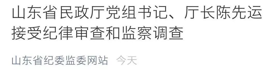 山东省民政厅党组书记、厅长陈先运涉嫌严重违纪违法,主动投案,目前正在接受山东省纪委省监委纪律审查和监察调查。