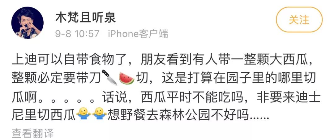 - 上海迪士尼允许自带食物后,有人带了一整个西瓜,还有一把刀......