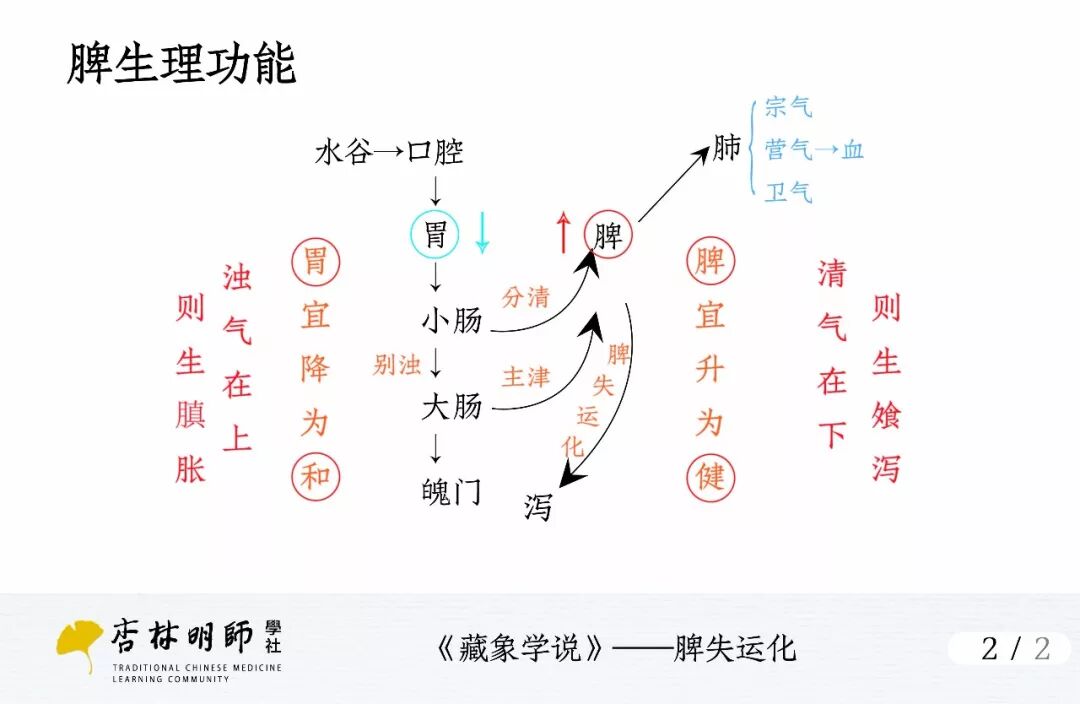 胃肠吸收的水谷营养物质,通过脾气运化以后向上输送到心肺、头面,再通过心肺的作用化生气血,以濡润、输布全身,这叫脾主升清。