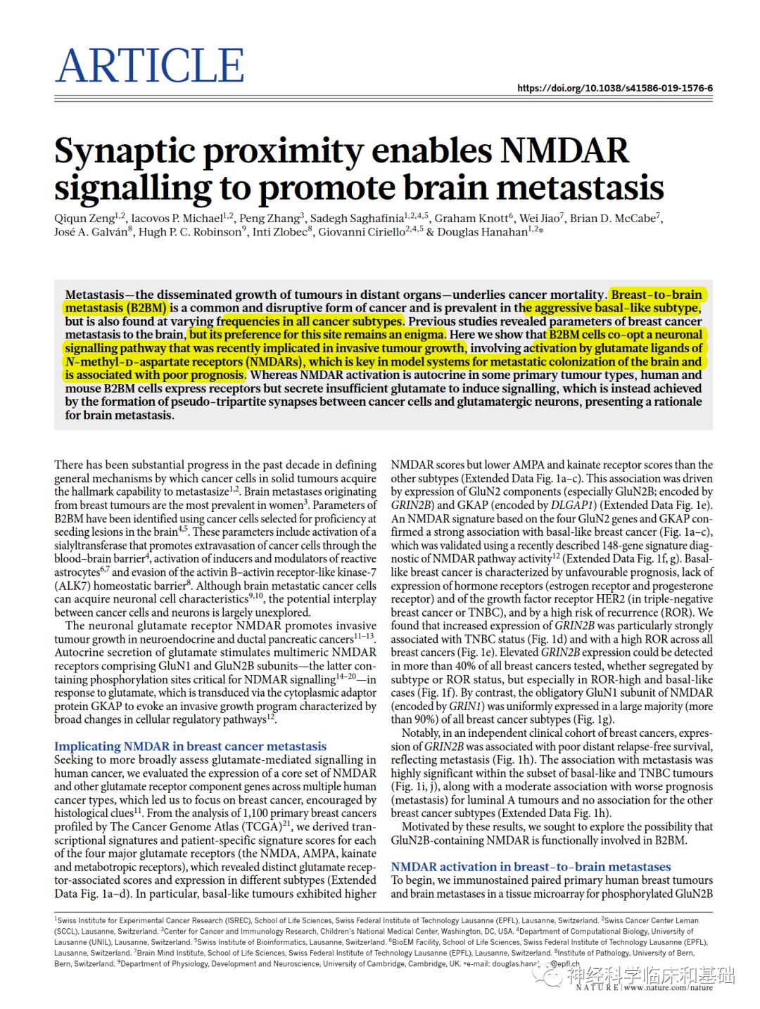 - Nature—癌细胞会伪装成星型胶质细胞!!乳腺癌细胞转移入脑可能与神经元激活癌细胞NMDAR信号通路有关