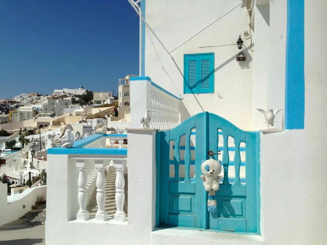 熊宝贝完美继承了她母亲的头型和五官,但身体色却与她的母亲截然不同。蓝白相间的毛发和一条长长的尾巴,让人疑心她的父亲也许是一只来自地中海的浣熊?毕竟有一次我带熊宝贝去希腊的圣托尼里岛,她几乎和那里的环境融为一体。
