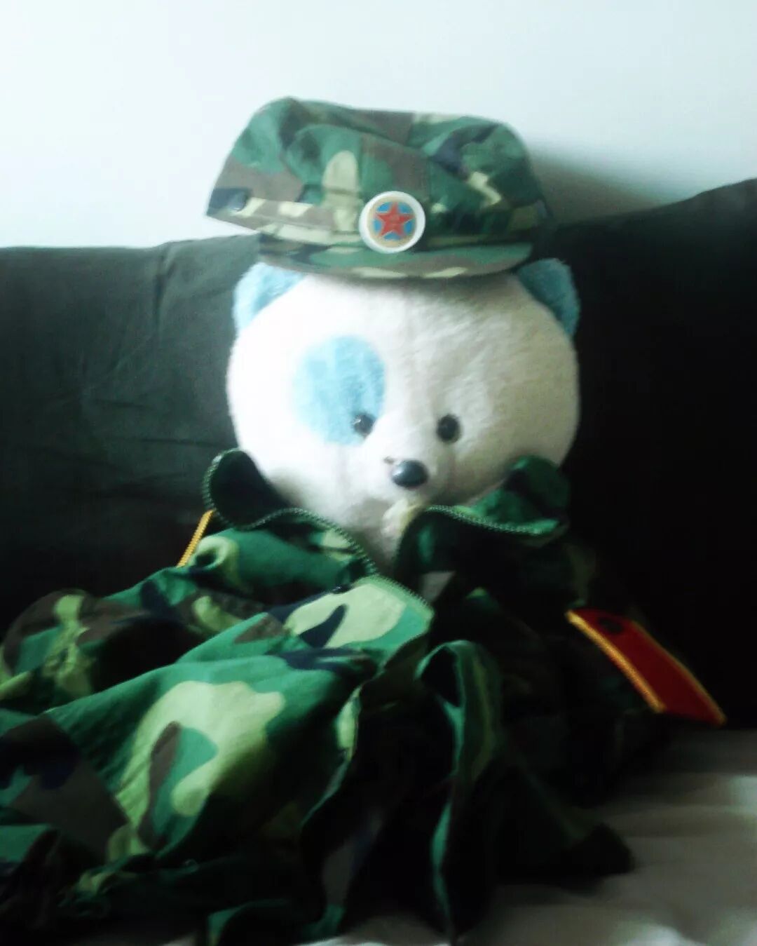 十六人的大通铺,接近40度的高温,每周一次的洗澡机会,食堂里永恒的大白菜,高强度的训练。从小被父母照顾得很好的我,完全无法适应这样的新生活,每天都想回家。唯一让能安慰我的就是熊宝贝。抱着她,闻着她身上熟悉的气息,就不会觉得自己是个没有家的可怜虫。