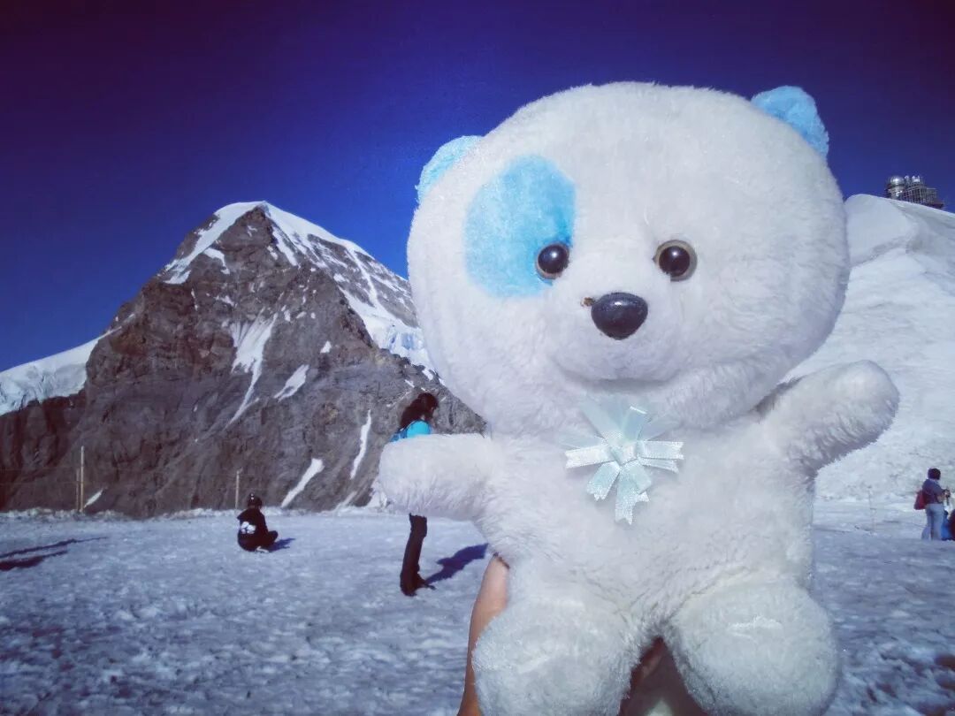 和家人一起在瑞士旅游的时候,因为我执意带把熊宝贝带到各处拍照,所以被他们嫌弃了一路。但我实在不想让她错过跟她的精神气质如此契合的美景。她应该是这个世界上为数不多的登上过欧洲之巅少女峰的熊。