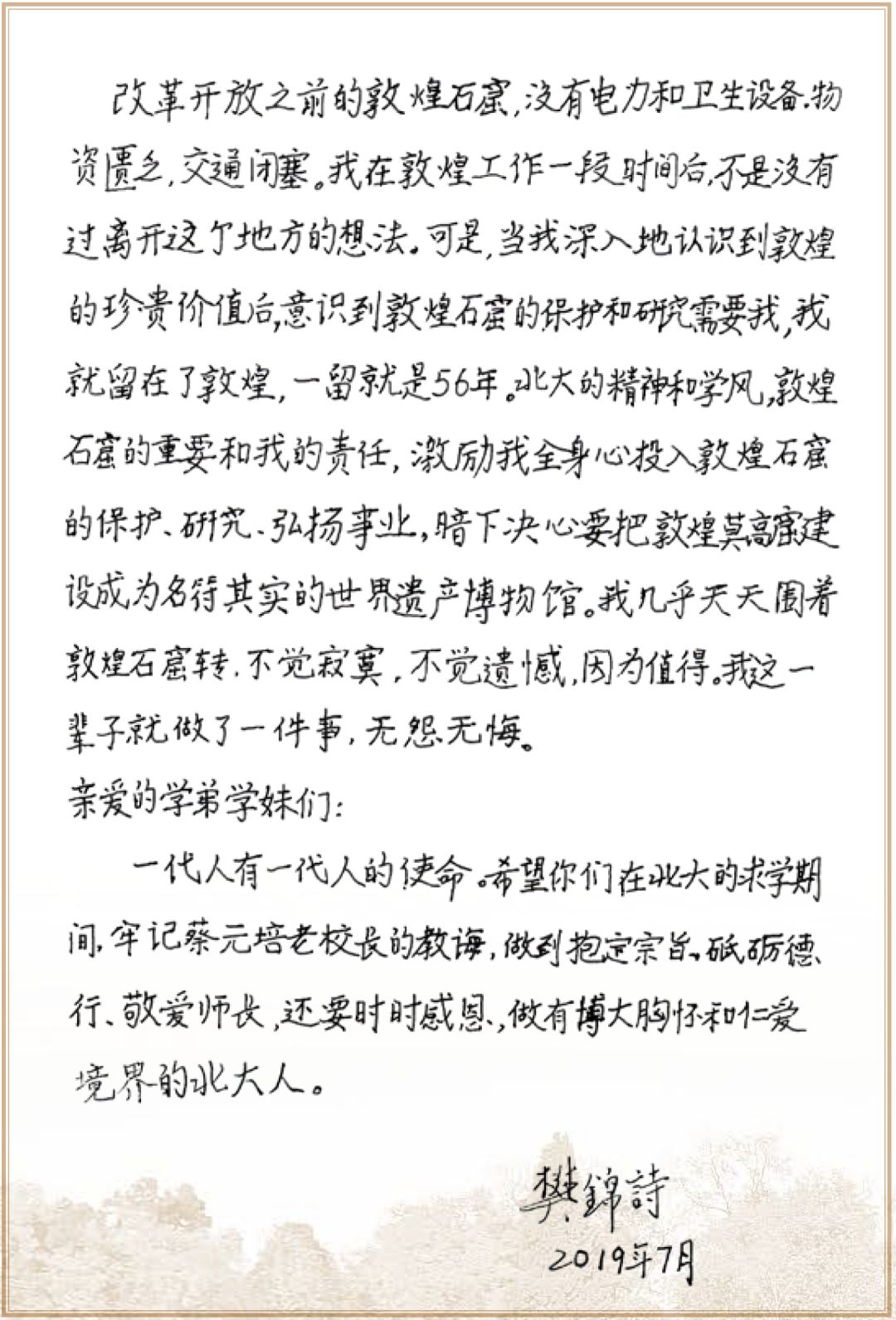 用4分26秒的时间倾听樊锦诗先生为新生朗读亲笔信