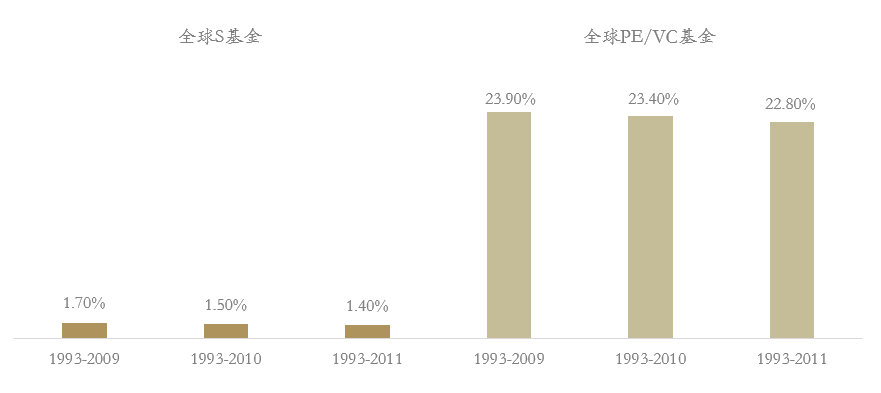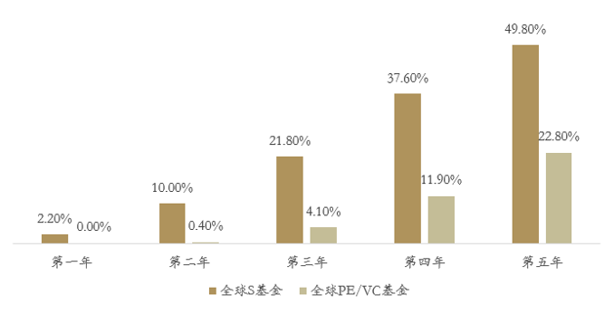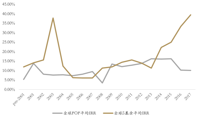 这主要有两方面的原因,一是因为S基金通常在基金运营较为成熟的时期进入,投资期更短;二是S基金在进入时有获得折价购买资产的机会。因此,S基金可获得比传统私募股权投资基金更高的平均IRR。