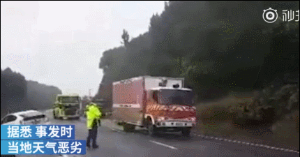 这辆客车在新西兰高速上因雨天路滑而发生翻车事故,