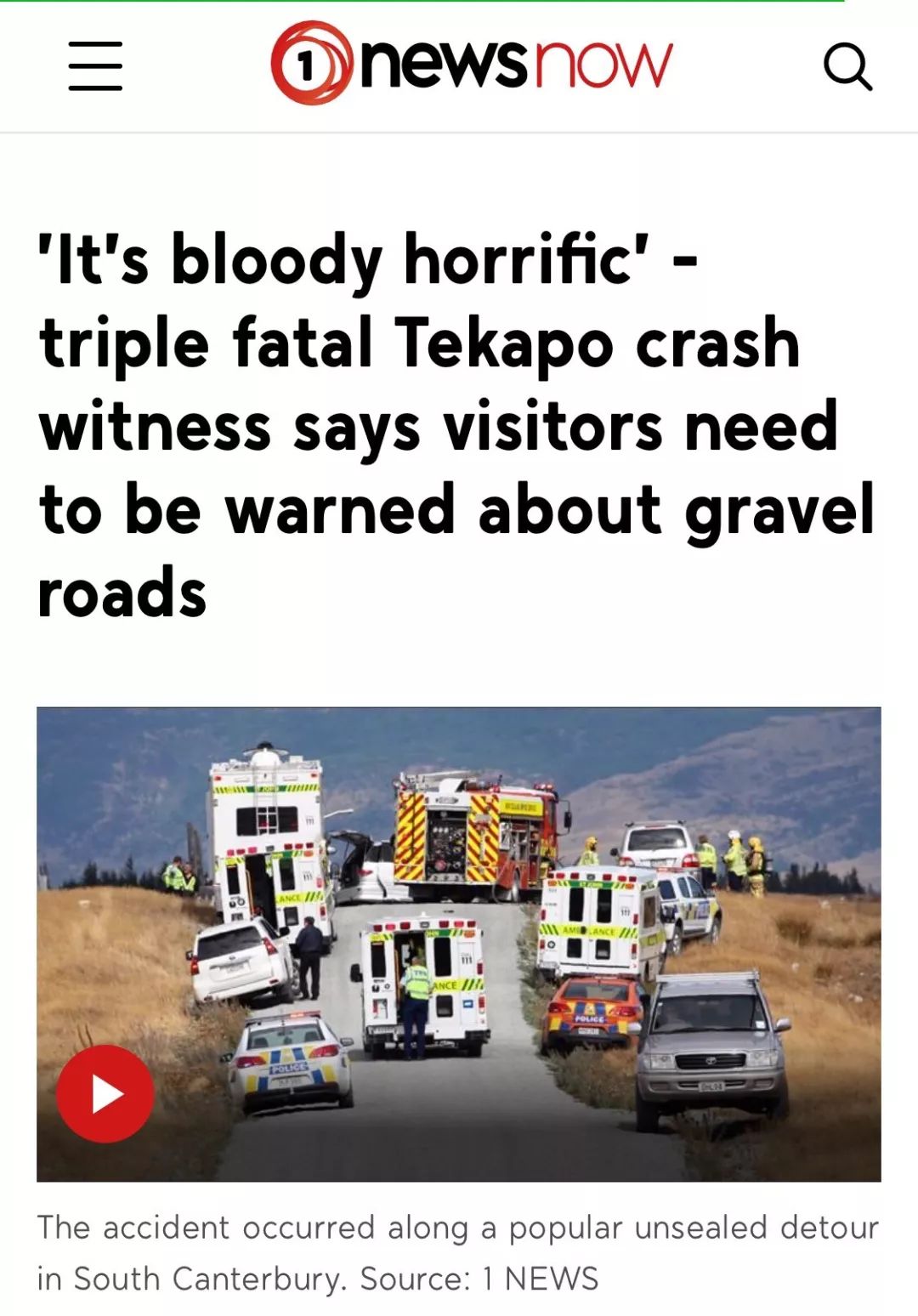 (newsnow:“场面极其惨烈” - Tekapo附近发生车祸,三人死亡。目击者:游客自驾须谨慎。)
