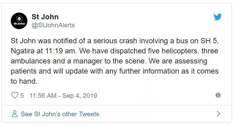 St John救护中心证实,他们于今天上午11点19分接到事故通知,