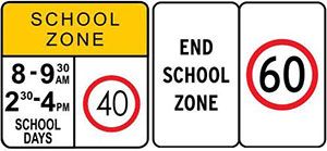 在途径校园区域时,应根据“School Zone”指示牌表明的时间段信息调整自己的车速,