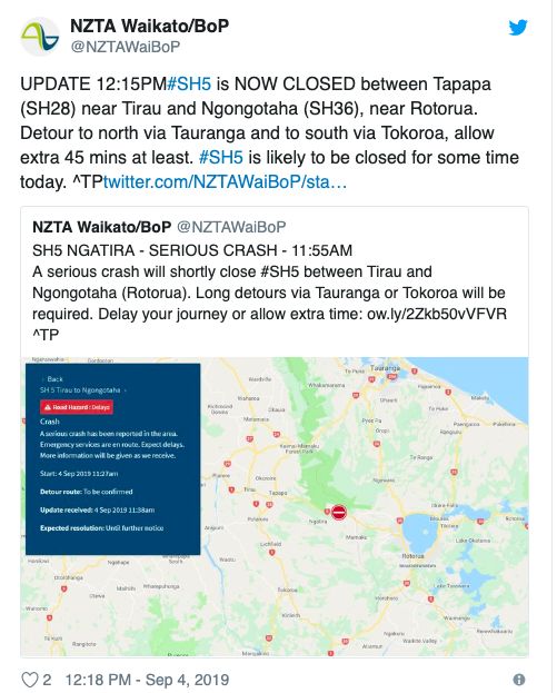 在靠近Waiohotu路和Galaxy路的5号国道上发生翻车事故。