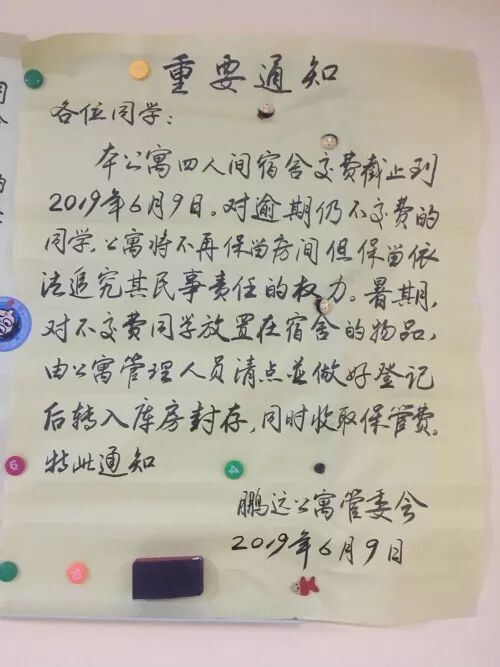 从去年9月到现在,不少学生联名反抗,拒绝缴纳高额费用,有学生甚至在校园里支帐篷表示抗议,但遭到对方强制断电,学校甚至送来了充电宝和台灯,部分学生甚至收到律师函,今年6月,公寓又贴出了相关告示,对暑期期间不缴费的同学,其物品将封存并收保管费。