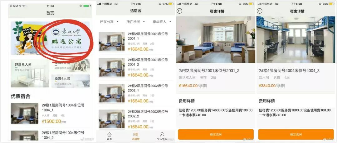 芥末堆拿到的一份合同显示,东北大学秦皇岛分校新建后勤服务园区由秦皇岛市鹏远房地产开发有限公司投资建设,占地50亩,建设需满足5000名学生住宿生活。据李忠介绍,鹏远公寓提供一人、二人、四人和六人的房间。此前费用在每学期1000多元到6000元不等。