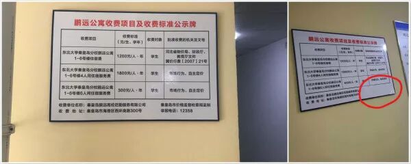 李忠(化名)是东秦大学大三学生,近日,她看到微信群传出鹏远高校后勤App公布的房间价格截图,发现自己在鹏远公寓居住的四人间费用涨到了3840元,其中服务费1800,而两人间的费用达到16000多元/学期,其中服务费达到14000元,超住宿费的12倍之多,尽管经媒体曝光后,“学期”改为了“学年”,但这仍让李忠感到不安。去年学期中途,公寓的价格曾抬过一轮,四人间住房费用从原先的2400元涨到3000元,但遭到学生抗议,李忠称,两次涨价公寓方均未提前和学生商量并说明理由。