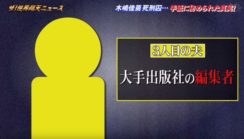 第三位是大型出版社的编辑,非常帅气也非常有才能,他在去监狱中采访时认识了木嶋佳苗,后来两人之间萌生了爱情,于2018年1月结婚。