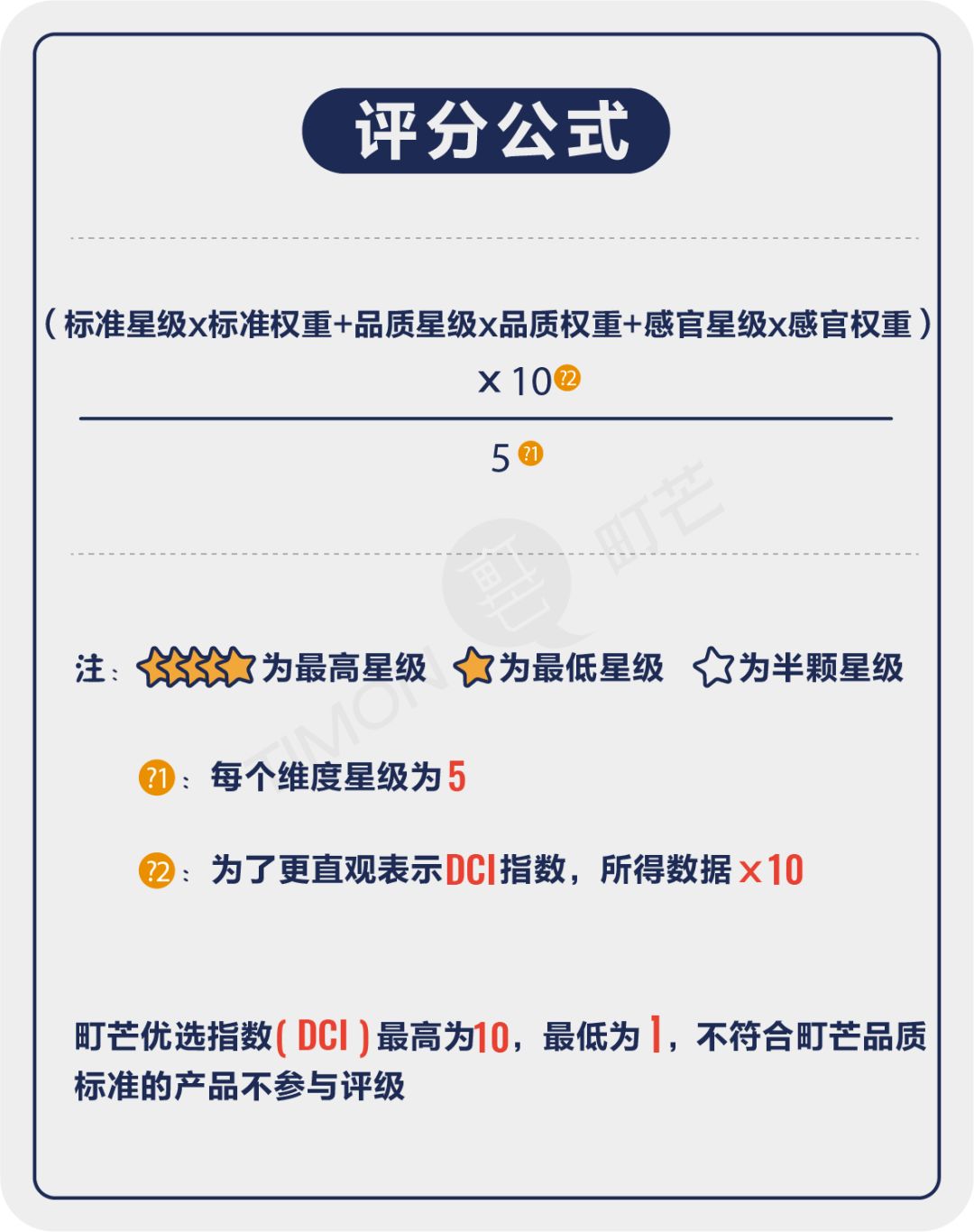 町芒君从执行标准(Standard)+品质(Quality)+感官(Sensory)三个维度综合评测一款产品,所得出的该款产品的最终指数,即町芒优选指数,数值越高代表综合品质越好。