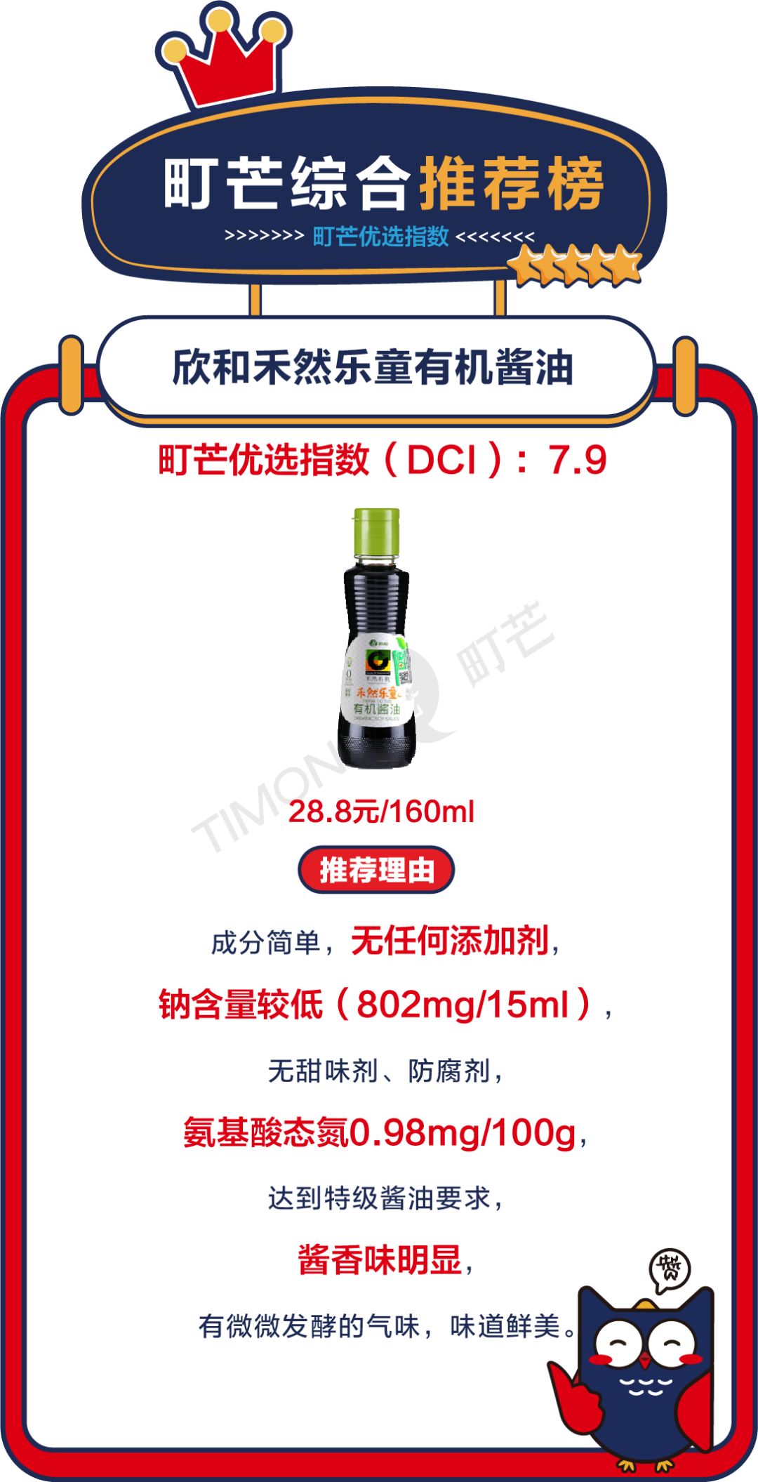 备注:本款推荐产品在本次12款评测产品中综合表现最优,但因传统酱油制作工艺问题,不存在“无盐无钠”产品,町芒建议各位宝妈在宝宝1岁之前不摄入任何酱油,2-3岁也应尽少的摄入酱油。