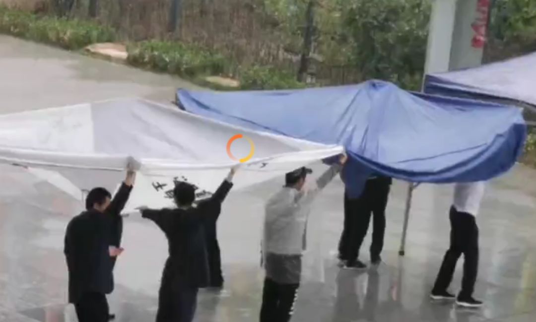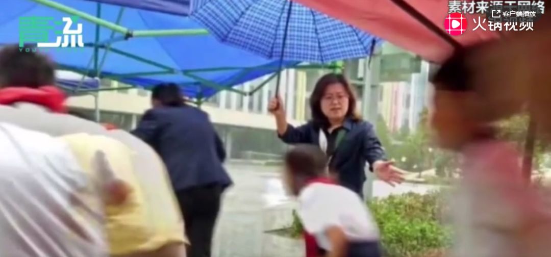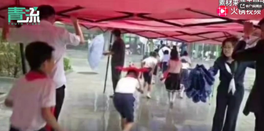 近日,一段 老师们排队撑伞为学生挡雨 的视频
