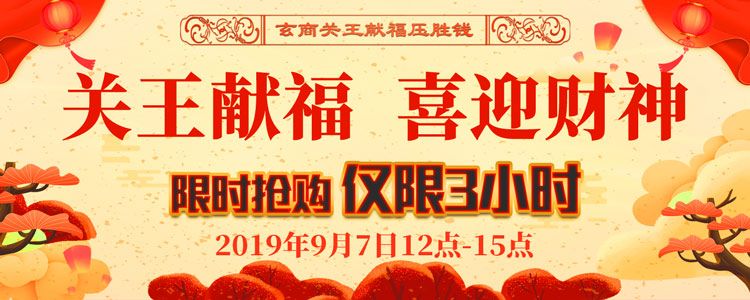 特此说明:玄商品牌在王者财经商城隆重推出关王献福压胜钱,喜迎财神回家!全场限时大抢购!2019年9月7日12点-15点进行购买。