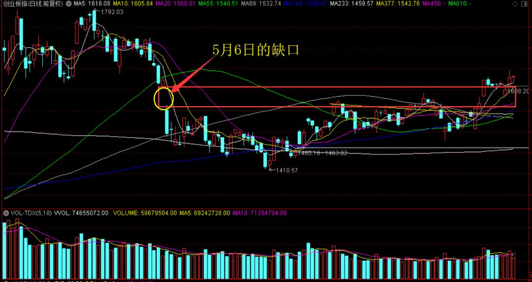 从技术上讲,创业板已经完全封闭了5月6日的缺口,而主板等权重股离5月6日的跳空缺口还有很大的距离,这表明主板上方的压力很大,再加上黄金均线的压制,短期想走出大行情比较难,向下概率较大。创业板上方压力较小,2015年以来一直没有出现过像样的上涨,年初那一波反弹流入了很多资金,尤其是一些机构资金现在都还在里面潜伏着,所以未来肯定是创业板先走强,最有可能出现的是创业板涨,主板调,之后创业板再带动主板一起进去牛市行情!