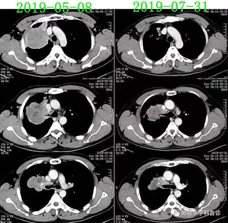 2019.7.31(治疗2个周期后32天)复查CT,肿瘤明显退缩,疗效评价:PR。