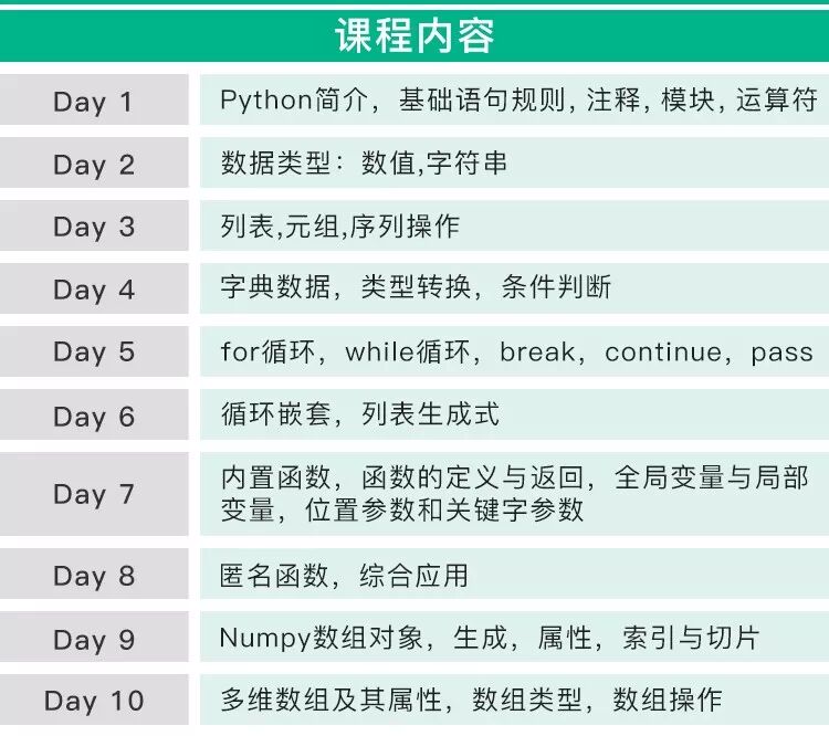 未明学院推出了Python编程零基础打卡营,专为零基础小白打造,每天30分钟,10天时间,从Python基础语法开始,带你高效走入Python这个当下最火的工具,get编程思维,为之后的步步进阶夯实基础!