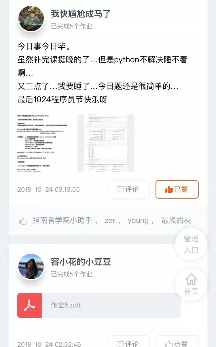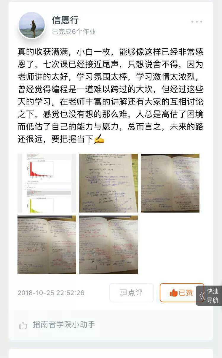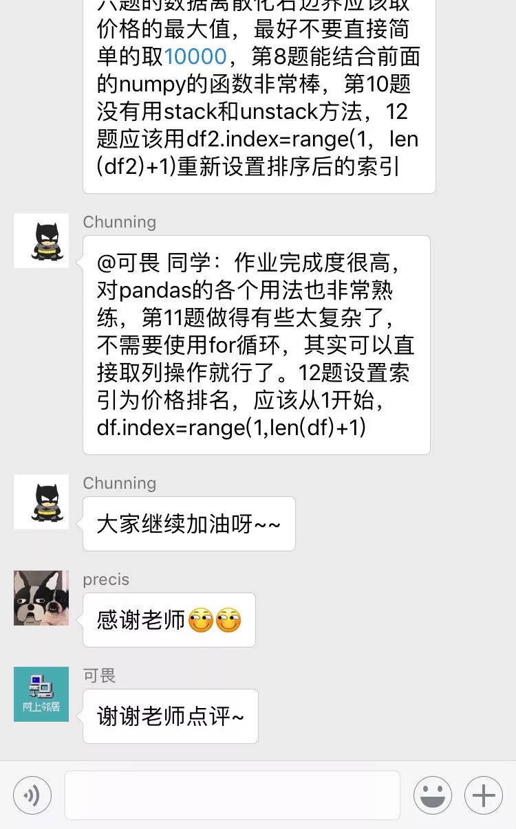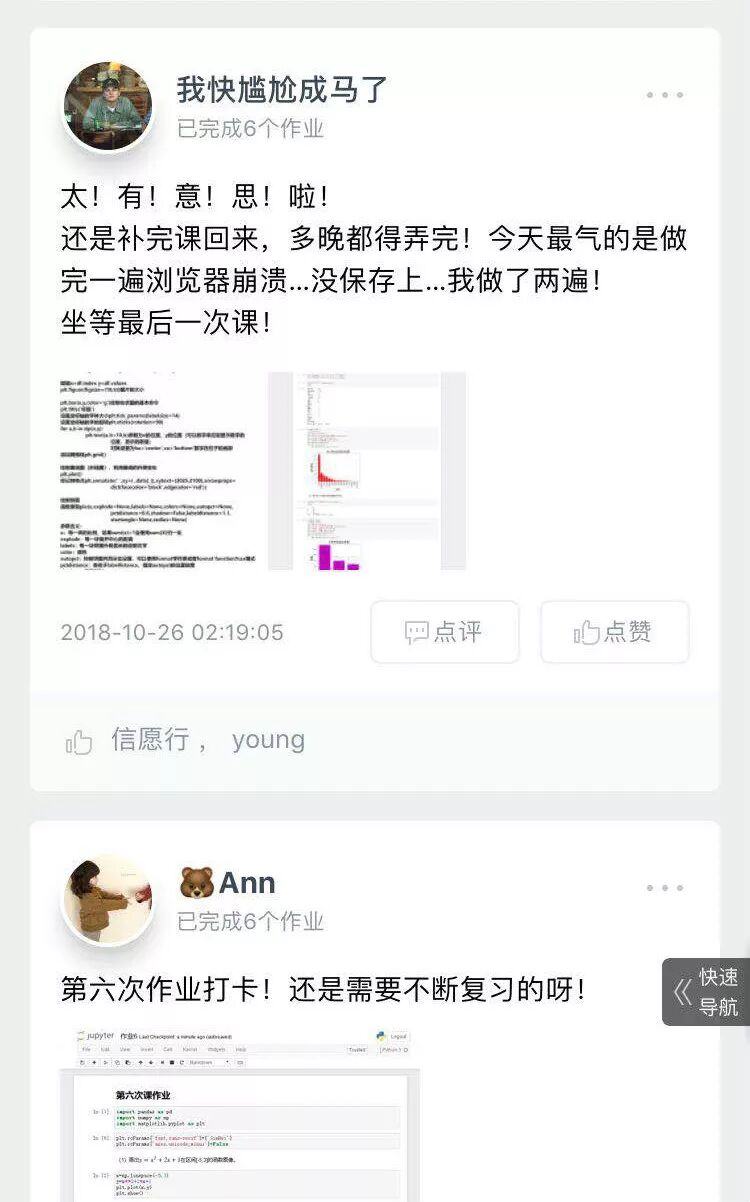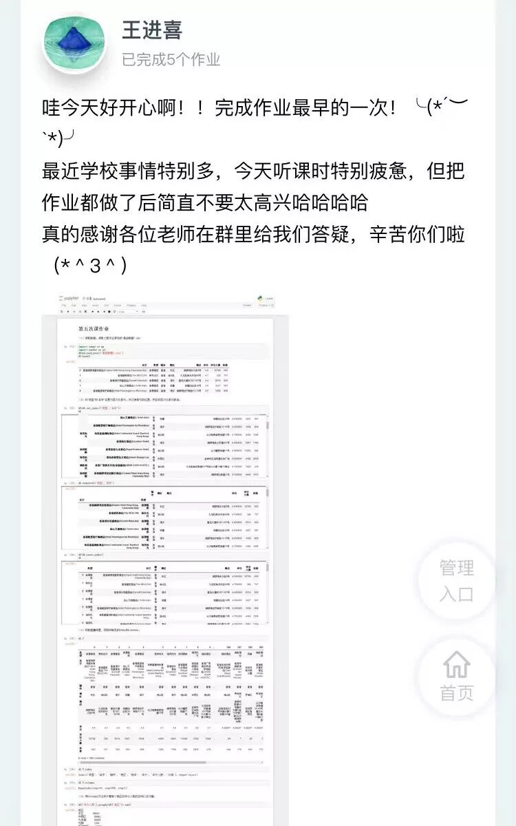 在整个课程设计中,我们通过微信群、小程序作业、作业讲解等方式,让每个学员都不会孤独。