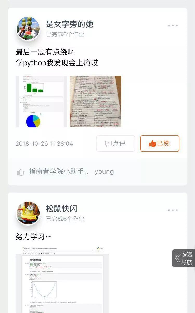 学习是需要陪伴的。无论是老师的指点还是同学之间的互相交流,都会大大的提高学习效率,许多同学自学Python半途而废,往往是由于自己卡在了某个知识点上,而身边找不到大牛来帮助。