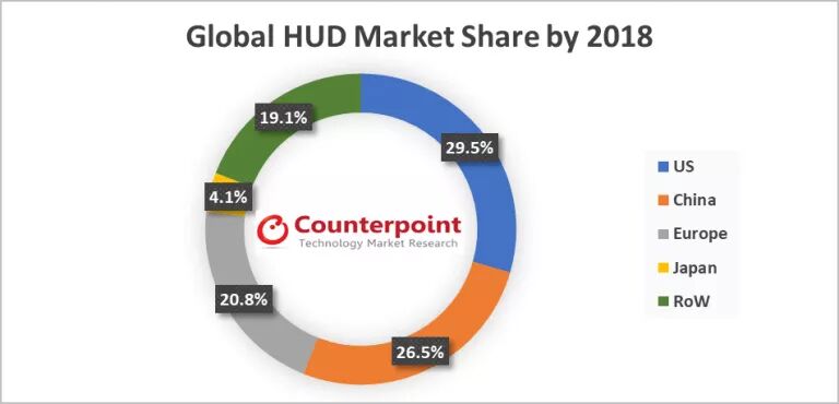 2018年全球HUD市场份额图