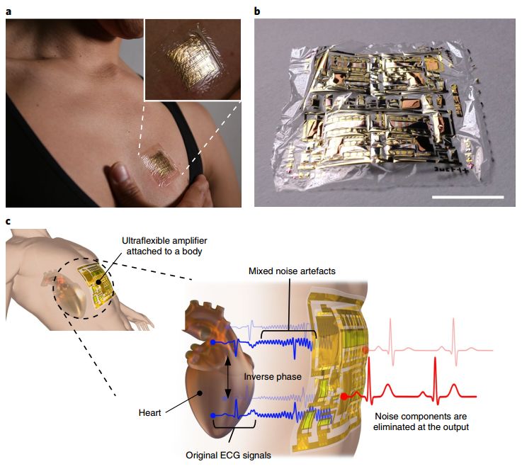 文章链接:Masahiro Sugiyama,et al, An ultraflexible organic differential amplifier for recording electrocardiograms. Nature Electronics (2019).doi.org/10.1038/s41928-019-0283-5.