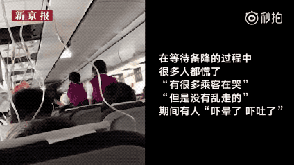 另一头的客舱内,面对乘客的惊恐与不安,乘务人员不断广播安抚道: