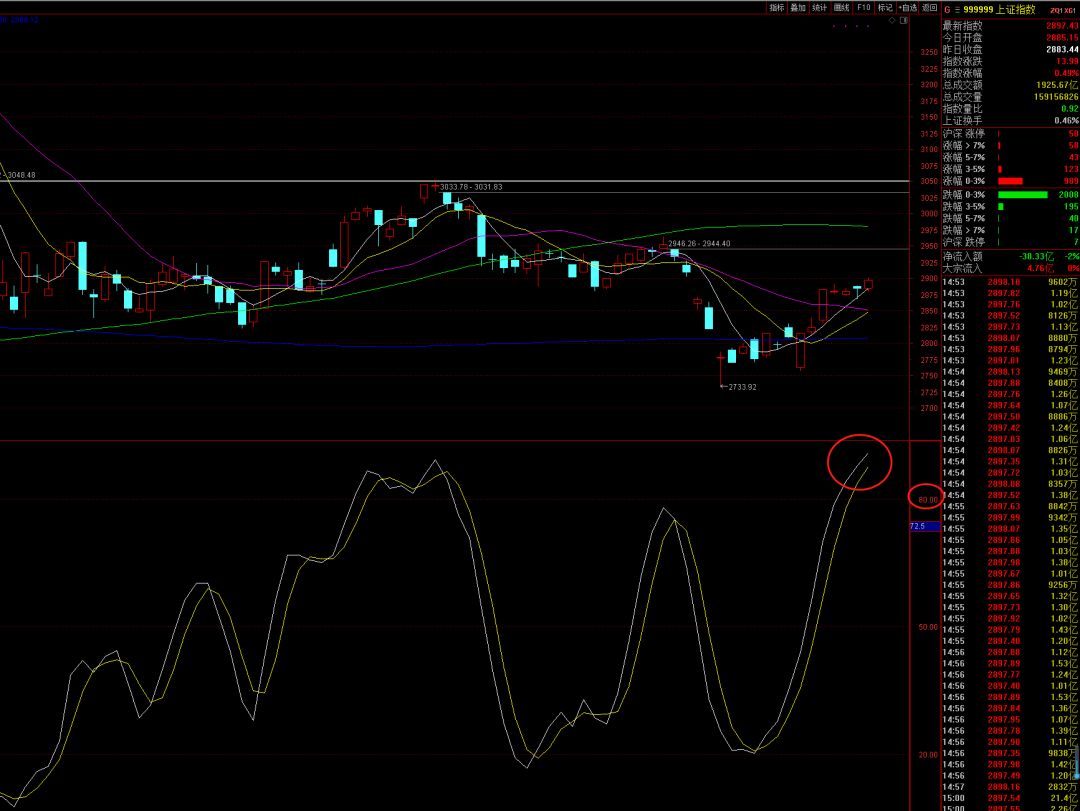从上面两图可以看到,上证指数30/60分钟SKDJ顶背离共振。