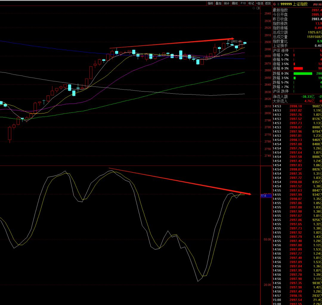 - 大盘30/60分钟顶背离共振