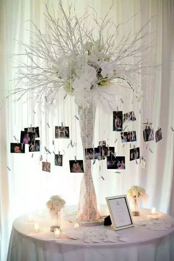 用绳子将照片挂在树枝上